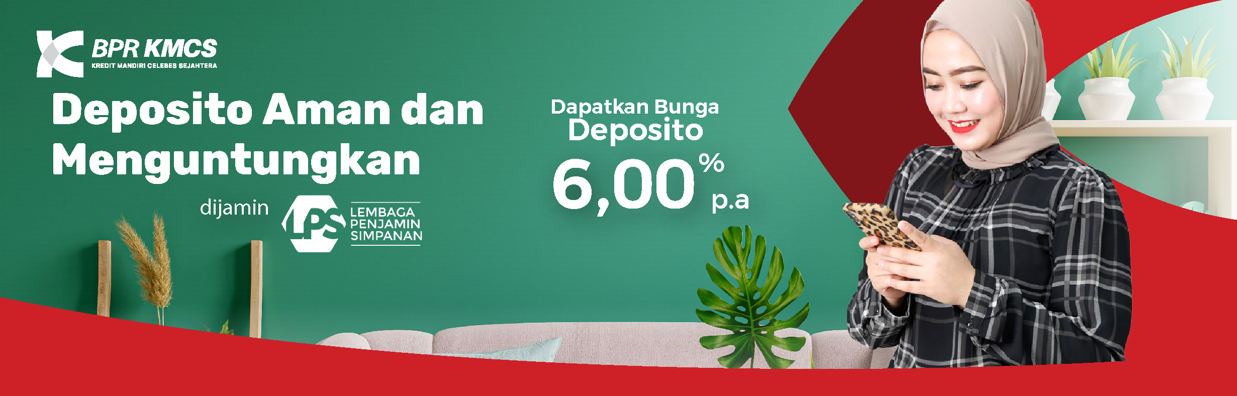 Investasikan dana Anda bersama BPR Kredit Mandiri Celebes Sejahtera dengan Aman dan Menguntungkan. BPR Kredit Mandiri Celebes Sejahtera dijamin oleh Lembaga Penjamin Simpanan (LPS) dan diawasi oleh Otoritas Jasa Keuangan (OJK).